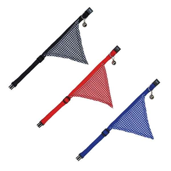Niedliches Katzenhalsband mit kariertem Halstuch. Das Halsband besteht aus Nylon und ist mit einer Schelle und einem Snap & Easy Sicherheitsverschluss ausgestattet.