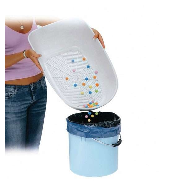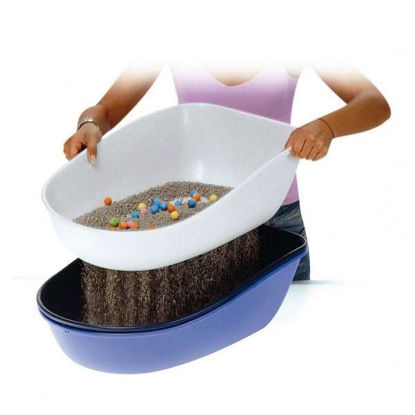 Die Siebeinlage dient dazu, dass nur die Klümpchen übrig bleiben und einfach entsorgt werden können und das unberührte Streu wieder zur Füllung der Toilette genutzt werden kann.