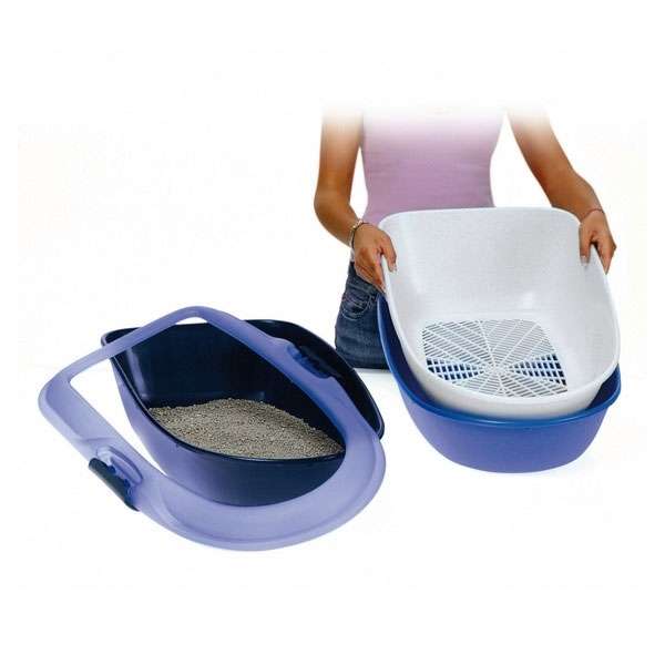 Die Katzentoilette Berto besteht aus drei Teilen 2 Unterschalen und 1 Siebeinsatz für ein schnelles und einfaches Reinigen.