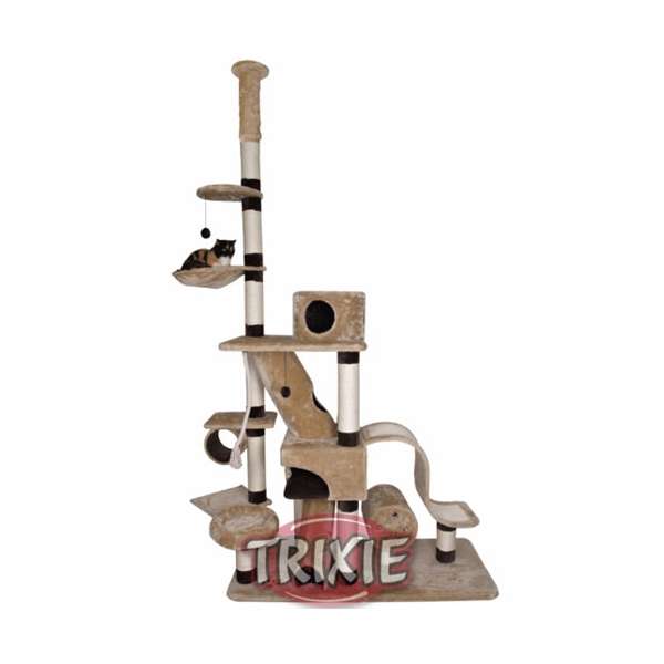 Der deckenhohe Trixie Kratzbaum Munera ist für Katzen jeden Alters geeignet. Er ist mit weichem Plüsch bezogen, die Stämme sind mit Natursisal umwickelt.