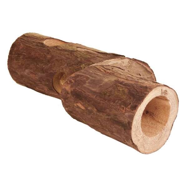 Röhrentunnel für Kleinnager, wie Hamster oder Mäuse. Der Tunnel Besteht aus Echtholz mit Rinde und ist mit mehreren Ein- und Ausgangslöchern ausgestattet.