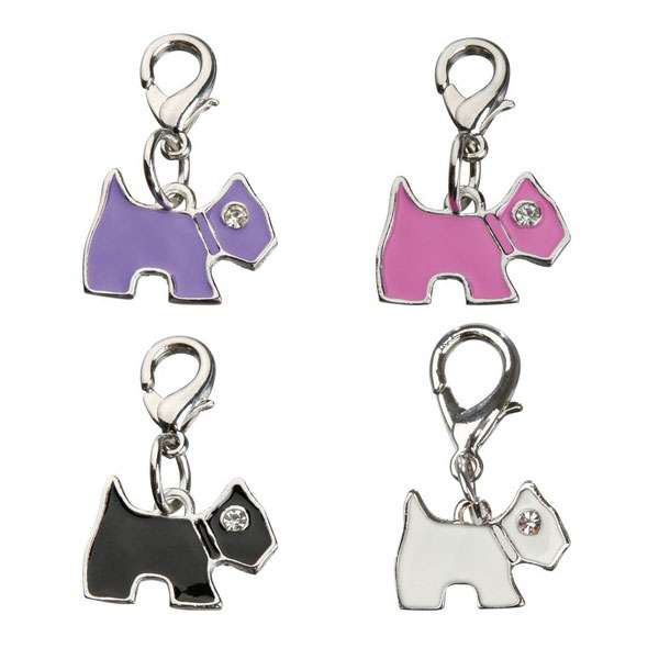 Dieser niedliche Schmuckanhänger in Form eines Hundes besteht aus Metall und ist mit einem Strasssteinchen besetzt. Mit Hilfe des montierten Hakens kann er ganz einfach z.B. am Halsband vom Hund befestigt werden.