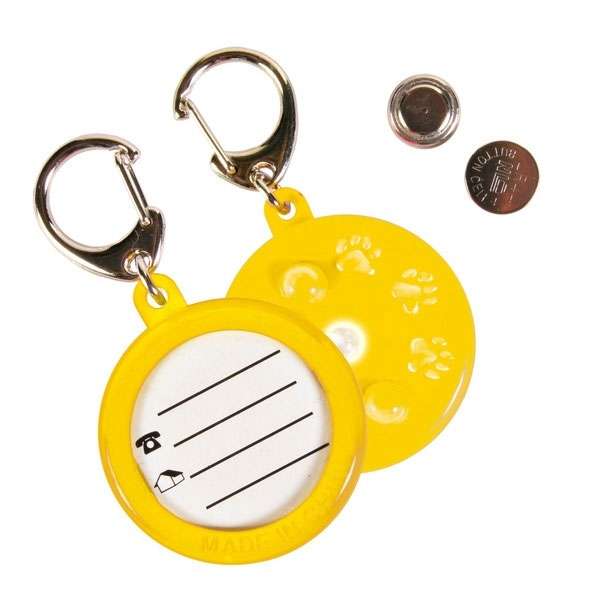 Auf der Rückseite ist der Kunststoffanhänger mit einem Durchmesser von ca. 4 cm mit einem Zettel zur Adressangabe bestückt, an der Front befindet sich eine Leuchtiode, mit der Ihr Tier bis zu 200 m sichtbar ist. Ideal auch z.B. für Kinder und Sportler. Einfache Befestigung an Halsband, Gürtelschlaufe etc. Inklusive Batterien.