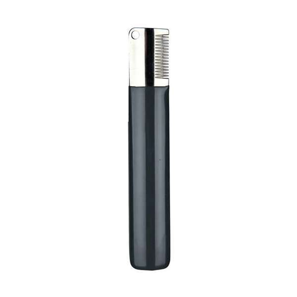 Dieses grobe Trimmmesser eignet sich speziell zum Trimmen von Rücken und Bauch. Die Klinge besteht aus rostfreiem Edelstahl, der Griff ist mit einer Gummiummantelung ausgestattet. Für eine sichere einfache Handhabung.